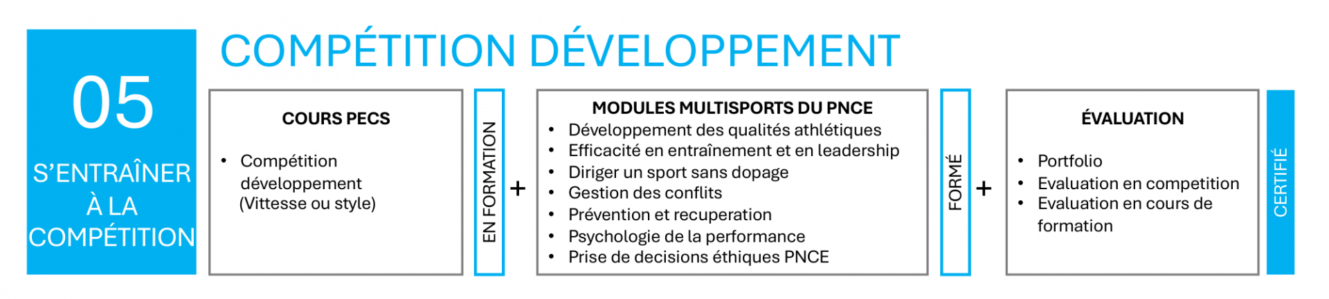 Pour obtenir la certification complète d’entraîneur Compétition – Développement du PECS, vous devez respecter les exigences ci-après.